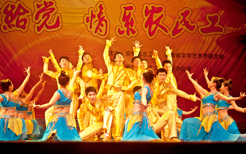 6月20日,为庆祝中国共产党成立90周年,由安徽省总工会、安徽省文艺界联合会联合主办的“红歌献给党、情系农民工”文艺汇演在中铁四局文化宫举行,来自全省各行业的200余名文艺志愿者为1000余名中铁四局职工和参加合肥工程建设的农民工献上一场精彩绝伦的艺术盛宴。安徽省委常委、省总工会主席王秀芳,省总工会党组副书记、常务副主席李维勇,省总工会副主席夏育才,省总工会副主席、省创建文明行业办公室主任陈平,省文联副主席、书记处书记王章好,省总工会副主席孙勇,局总经理许宝成,局党委副书记、纪委书记资宝成观看了演出,并亲切慰问了参加汇演的文艺志愿者。