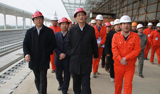 3月22日,铁道部副部长卢春房、副总工、建设司司长安国栋一行在上海铁路局局长安路生、党委书记黄殿辉、常务副局长王峰、京福客专安徽公司总经理张骥翼、中铁四局总经理许宝成、副总经理闫子才等领导陪同下,视察了中铁四局合肥枢纽一标、合蚌客专站前二标工地,并给予高度评价。