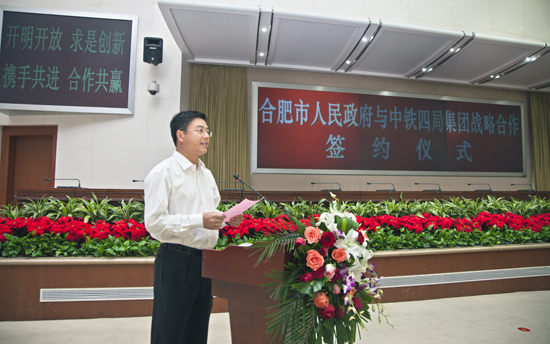 为了更够更好的服务安徽、服务合肥的地方经济建设,中铁四局与合肥市签署战略合作协议,进一步构建双方求真务实、互惠互利的战略合作体系,使中铁四局能够在全面展开的合肥新一轮城市规划建设中,更好、更多地添砖加瓦、做出贡献。