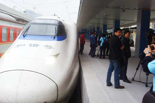 福厦铁路首列和谐号动车组从厦门驶出开往福州 (李克智 摄)