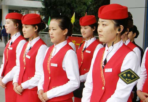 正在等待首列开抵厦门的动车乘务员。(李克智 摄)