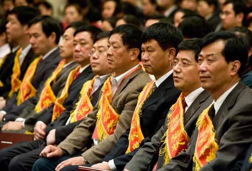 图为大会受表彰的劳动模范和先进工作者 (安保田 摄)