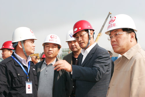 10月16日,铁道部副部长卢春房在济南铁路局常务副局长朱望瑜、德龙烟铁路工程建设指挥部指挥长罗和平、中铁四局总经理许宝成、副总经理王砚才等领导的陪同下,到中铁四局德大铁路Ⅱ标施工现场检查指导工作。