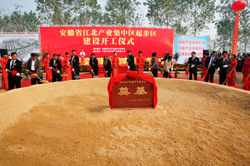 10月16日,安徽省江北产业集中区起步区正式开工建设。安徽省常务副省长孙志刚、省人大常委会副主任朱维芳、省政协秘书长王启敏等出席开工仪式。孙志刚宣布开工。中铁四局董事长、党委书记张河川出席开工仪式并讲话。江北产业集中区党工委书记、管委会主任毕小彬,巢湖市市长张飞飞与和县县委书记吴桂林也分别在仪式上致词。省直有关部门负责人、巢湖市主要领导和局副总经理汪志成应邀参加开工仪式。