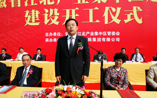 张河川代表江北产业集中区首个投资合作方——中铁四局向江北产业集中区的开工建设表示热烈祝贺,向长期关心支持四局发展的各位领导、各界朋友表示衷心感谢。张河川说,江北产业集中区作为首个获批复的国家级承接产业转移示范区,具有环境承载能力强、要素成本低、产业基础和配套能力好等综合优势,是国家实施促进中部地区崛起战略目标的重点发展区域,对于探索承接产业转移新途径、新模式和促进中部地区崛起具有重要意义。中铁四局是“世界企业500强”——中国中铁股份有限公司的标杆企业,是具有良好声誉的国有特大型建筑施工企业。多年来,四局坚持以科学发展观为指导,在做大做强建筑主业的同时,积极向建筑业上游、下游发展,致力向市政基础设施建设、高速公路、能源开发、房地产等投资建设产业延伸,与安徽淮南市政府合作开发了山南新城项目,与江苏如皋市合作开发了如皋公路项目,探索出了一条由政府和企业联合开发、实现合作共赢的城市化建设新型模式。今年9月6日,四局与江北产业集中区签订了战略合作协议书。在今后的建设过程中,四局认真履行合同职责,充分发挥中国中铁、中国中铁四局在品牌、资金、技术、管理等方面的优势,优质高效地建设好江北产业集中区,为安徽省全面转型、加速崛起、兴皖富民做出积极贡献。(高山 笪志)