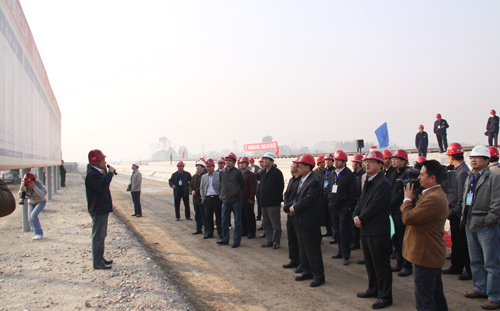 京广客专河南有限公司副总经理李松报在总结会上说:中铁四局在生产上做到了超前谋划,科学组织,统筹安排,施工进度处在全线前列;中铁四局标准化工地建设高标准、高定位,施工现场各种标识、标牌、便道等均按规范要求到位,现场布置合理、分区明确、场地平整,整体感观良好,将标准化管理工作做到了常态化,充分展示了企业先进的管理理念和水平;标准化管理工作全面推行,人员、制度、过程、现场都规范一致,充分把握了、认真落实了铁道部标准化管理有关要求。感谢中铁四局在石武客专河南段建设中,自进场以来,一直作为石武河南全线的排头兵,敢为人先,刻苦钻研,率先较好的掌握无砟轨道施工的各类技术工艺,为其他施工单位做出了榜样,树立了典范。