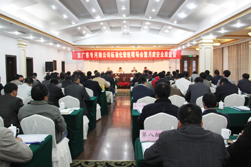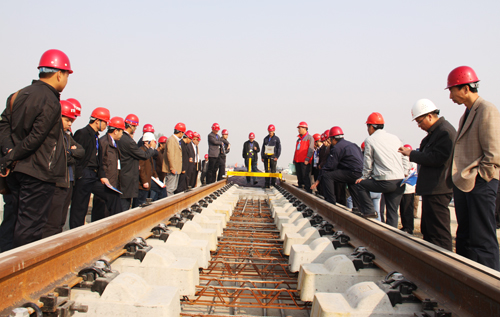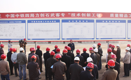 10月29日,京广客专河南有限公司标准化管理现场会暨月度安全质量会在中铁四局石(家庄)武(汉)铁路客运专线(河南段)项目部召开。京广客专河南有限公司总经理马春山、中铁四局总经理许宝成及来自石武客专河南段19家施工单位的领导,监理单位、设计单位负责人,外方首席质量代表等180余人参加了现场会。与会人员在观看了中铁四局石武客专河南段项目部板式无砟高速道岔,CRTSⅡ型板式无砟轨道,许昌车站3、4道双块式无砟轨道,路基、站场附属工程等都给予了高度评价。会间,中铁四局等6家单位先后交流介绍了在铁路客运专线标准化管理等方面的经验。
