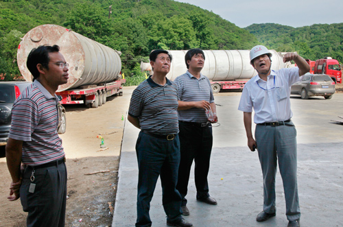 局工会主席兼项目经理党工委书记段广和在现场察看工程进展情况