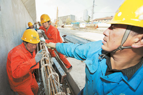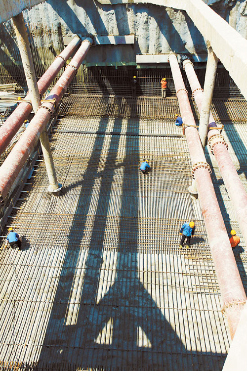 二公司南京城西干道路网改造项目经理部承担着水西门隧道的施工任务,管段全长1280米,工程总造价8亿元。该经理部以“夺旗争杯当明星,为青奥会做贡献”立功竞赛活动为抓手,针对临近南京古城墙和秦淮河,地处闹市区,车流、行人流量大,地下管网密集,地质情况复杂等情况,严格安全生产卡控,狠抓精品工程建设,坚持施工进度周考核、月兑现,确保了季度计划和关键节点工期目标的实现。经理部先后荣获南京市总工会2012年度“工人先锋号”称号,获评局2012年上半年“重点工程夺红旗”劳动竞赛先进组织单位,并多次在南京市城西片区指挥部和局指组织的综合评比、立功竞赛活动中名列前茅。截至4月6日,该经理部累计完成基坑支护咬合桩、高压旋喷桩、立柱桩等桩基工程共计14111根,占设计总量的68%。累计完成支护结构占设计总量的79.7%,主体结构占设计总量的9%,土方工程占设计总量的37%,桥涵工程占设计总量的73%。(李旭 摄)