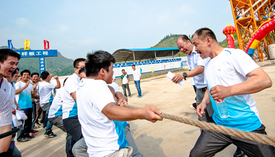 6月19日,踏着织(金)毕(节)铁路建设会战的鼓点,中铁四局“激情体育,行进四局,健康生活每一天”主题传递活动在(重庆分公司)织毕铁路项目经理部六分部搅拌站延续。主题传递活动与趣味体育活动交相辉映,精彩纷呈,吸引了该公司织毕项目百余名参建员工以及当地苗族同胞踊跃参与,一次次掌声、笑声、加油声将活动推向了高潮。