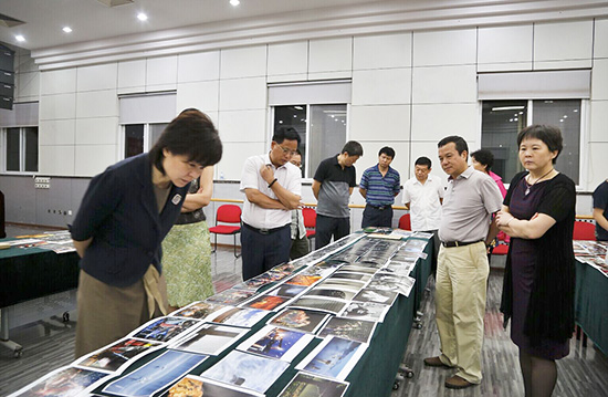 ↑中国摄影家协会主席王瑶及专家评委在现场评审作品