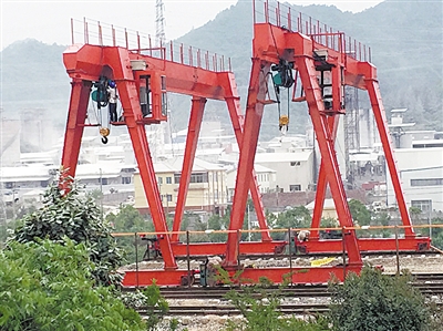 由中铁四局八公司承担的九景衢浙江段铺架工程,目前正在进行既有线改造,该公司首次采用滑触线作为铺架基地龙门吊接触网。(郑红梅摄)