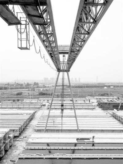 陈平告诉记者,按照常规方法,这些节段钢梁会通过海上运输、然后江面船舶上提升钢梁、最后悬拼架设。但主桥钢箱梁结构自重大、定位精度要求严,且在江边有100多米的滩涂区,再加上桥位临近码头,夜通航量较大,无法用船舶将钢箱梁节段运输至拼装位置,就更不用说江水急浪大、涨落潮时流速流向多变产生的影响了。