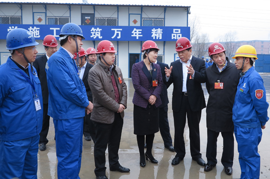 3月12日,在京参加两会的安徽团全国人大代表高亚飞、高莉、赵皖平、李祥斌、许宝成5位代表利用会议休息间隙,风尘仆仆的来到由中国中铁四局集团有限公司承建的国家重点工程——南水北调东线工程的工地上,看望、慰问来自安徽地区的农民工朋友。