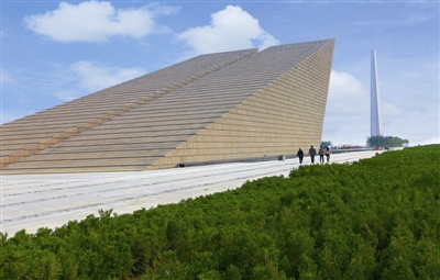 在美丽的巢湖之滨,耸立着拥有跨度35米、悬挑高度40米的巨大“船头”,犹如一艘乘风破浪的“巨型战舰”驶入800里巢湖之中。这就是该公司承建的渡江战役纪念馆。纪念馆建筑面积1.7万平方米,主体建筑为钢筋混凝土框架——剪力墙四层结构。这座由中央军委立项、安徽省政府挂牌的工程,不仅因其特殊重要性备受各方关注,而且因其独特造型、高难度的要求吸引人们的眼球。工程大体积混凝土、高大模板支撑超高、超长、超重船头施工技术的创新,填补了国内多项施工技术的空白。就拿纪念馆的“船头”施工部位来说,该船头是超长、超重、超高悬挑结构,其悬挑端顶点高40米,坡面斜度达到49度,悬挑出去部分长达35米。也就是说,纪念馆很大一部分将处于“悬空”状态,混凝土浇注后的总重量达7500吨。如何支撑“悬空”部分,国内尚无现成经验可借鉴,是本项目施工的关键技术难点。2009年6月,纪念馆开工建设。公司把技术创新和工程质量放在首位,把施工安全作为重中之重。公司会同合肥工业大学、东南大学、安徽省地质勘查设计研究院等有关单位共同研究,编制出了悬挑高支撑架施工及技术方案,并在合肥工业大学实验室做了槽钢钢管组合体系承载力实验,委托东南大学对方案进行了验算和优化。公司还组建了“渡江战役纪念馆项目工作组”,长期驻守在施工现场,指导协调。施工中,集中了约3700吨各种钢管材料、120多万只扣件,投入资金约2000多万元在“船头”下方搭建起了一个同样高40米的巨型支架。这些管材如果一根根地连接起来,其长度相当于合肥至北京一个来回的距离!同等规模的一座普通房建工程一般只需要20多个架子工,而该项目部“船头”作业最高峰时,仅架子工就多达200多人,与另外400多人的钢筋工、木工在4个作业层面展开立体交叉作业。2010年3月20日,主体工程顺利通过了安徽省“安全质量标准化工地”验收。工程完成了“超高超大悬挑结构高支撑架体设计及施工关键技术”,该技术分别荣获中国施工企业协会科技进步一等奖、安徽省科技进步三等奖、局科技进步二等奖、股份公司科技进步一等奖。