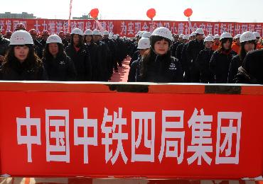 2月28日,来自中铁四局的施工技术人员在工程启动仪式上。新华社记者 张领 摄