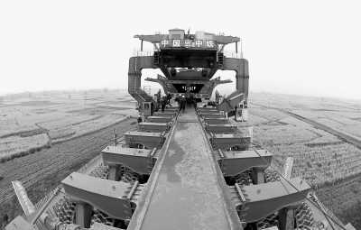 3月23日,架桥机在位于九江的昌九城际铁路永修特大桥工地现场架梁。昌九城际铁路位于江西省北部,从九江庐山火车站至南昌,其中新建线路全长91.5公里,有望于2010年投入运营。