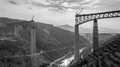 4月8日清晨,工人在中老铁路元江特大桥上进行钢桁梁架设作业(无人机照片)。 4月7日,中老铁路全线重点控制性工程——元江特大桥迎来关键节点,主桥钢桁梁正式“迈”过154米高的主桥墩,这是世界同类铁路桥梁第一高墩。元江特大桥位于云南省元江县,采用上承式连续钢桁梁跨越峡谷,全长832.2米,建成后,其249米的主跨也将刷新国内同类桥梁跨度纪录。 新华社记者 江文耀 |