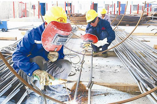 中国中铁四局集团成贵铁路项目部四分部承建的成贵铁路1标五通桥岷江特大桥全长26.201公里,主墩钻孔桩直径为2.5米,最大深度达30余米。截至目前,他们已累计完成主墩钻孔桩100余根。图为该项目部员工正在进行钢筋笼焊接作业。 张君 摄