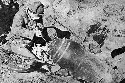 在一次三天三夜的连续战斗中,他一个人卸除了五百颗炸弹。