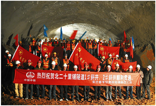 中国中铁四局集团宝兰客专11标项目部面对工程技术标准高、施工控制难度大、工期紧、风险高等实际,发挥党组织在项目建设中的战斗堡垒作用和共产党员在施工中的先锋模范作用,推动了项目管理工作的顺利开展。项目安全、质量、文明施工、标准化管理、新技术应用等管理工作受到业主的肯定。图为项目部党员突击队在隧道斜井贯通现场合影留念。(翁成龙)