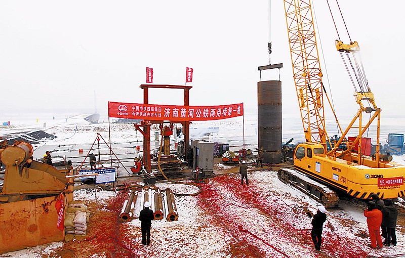 2月7日,中国中铁四局集团承担施工任务的石济客专全线重点控制工程济南黄河公铁两用特大桥第一桩顺利开钻。为实现这一目标,中铁四局集团员工跑步进场,合力攻坚,做了充足的事前准备。