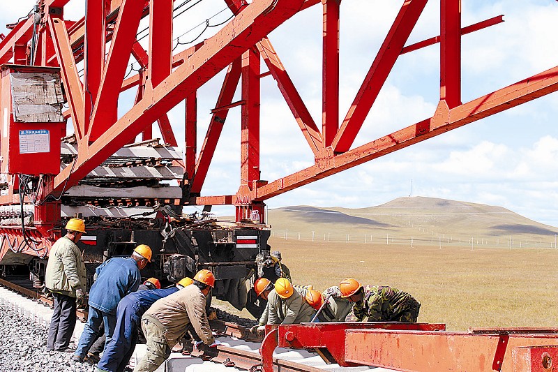 2013年7月24日凌晨,随着最后一片T梁稳稳地落在桥墩上,锡乌铁路宝日格特大桥顺利完工。位于两山之间的宝日格特大桥以其弯弓射大雕的独特造型,成了草原上的一道亮丽风景,吸引过往游客驻足。宝日格特大桥全长3647.7米,共有32米简支T梁110孔。施工期间,项目部组织 “大干40天,安全架设宝日格特大桥”劳动竞赛。他们提前维修保养架桥机,班前点名时认真进行架梁安全技术交底。班子成员分兵把控施工现场关键环节。由于大桥处于两山之间,桥墩高达51米,施工常年处于风口位置,架设该大桥安全风险高,项目部专门配备两台测风仪,派专人观测风力变化,每达6级及以上大风就停止架桥,降低架梁安全风险。项目部党工委适时开展