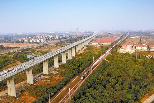 11月7日,由中国中铁四局集团金东制梁场施工的杭长铁路客运专线义金特大桥无砟轨道板精调、灌浆任务全部完成。 蔡朝阳 摄