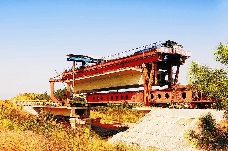 近日,中国中铁四局集团二公司机管中心承担箱梁架设施工任务的金 (华)温(州)铁路扩能改造工程站前第一标段东干渠中桥箱梁架设完成。至此,该公司已安全完成了东阳江特大桥、跨老330国道中桥、东干渠中桥箱梁架设施工任务。这3座桥的箱梁架设任务完成,为向金华方向施工打通了10多公里的绿色通道。(龙杰 摄)