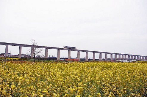 3月28日,在杭 (州)长(沙)客运专线金华段义金特大桥至义乌西特大桥上,中国中铁四局集团二公司机管中心900吨运梁车运输900吨箱梁缓缓地行驶架设。截至目前,他们共完成箱梁运架930孔,占架梁总量的85%,实现了首季开门红目标。 龙杰