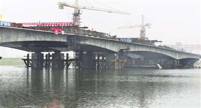 记者在施工现场看到,新建的漳河大桥桥身呈优美的弧形,线型自然流畅,为漳河增添了一道新景。据了解,大桥合龙后,施工单位将展开桥面铺设、桥梁栏杆、人行道等附属工程施工,预计整个大桥将于年底交付使用。