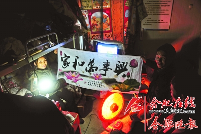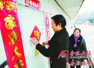 过年这几天,夫妻俩都安静地呆在板房里,看看电视、和老乡们聊聊天,无聊时就拿起针线绣十字绣。胡碧兴说,他们跟着施工队来合肥已经四个多月,这是第一年在外过春节,平时都忙惯了,突然闲下来,还真不适应。