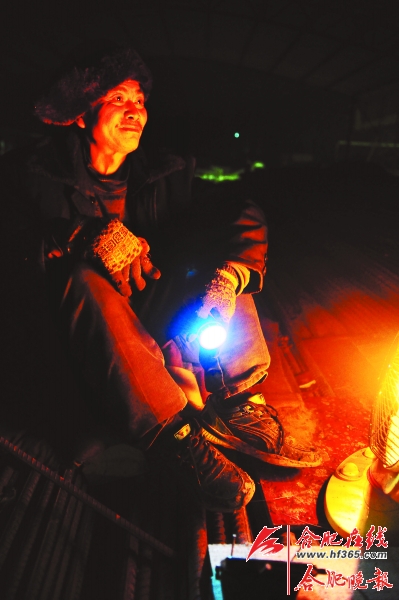 初三夜里,在工地上值夜的杨昌银时不时地窝在取暖器边上取暖