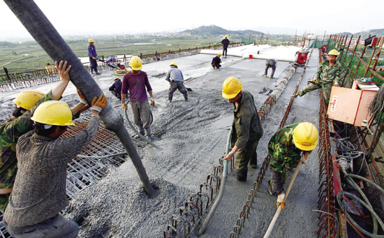 昨日,中铁四局杭长客专金华段义金特大桥吴村连续梁完成浇筑。吴村连续梁位于义乌义亭镇吴村,全长112米,为连续箱梁结构,采用支架现浇法进行一次性整体浇筑。