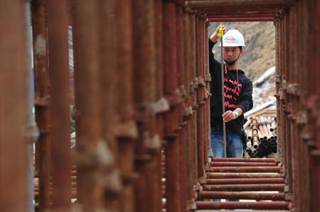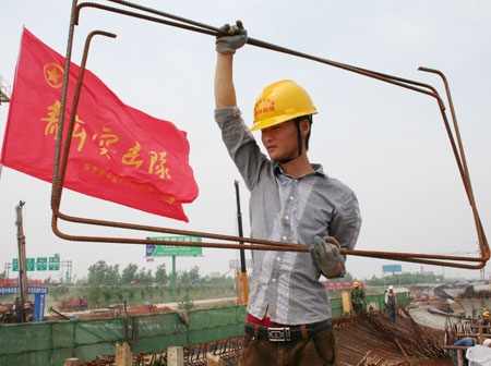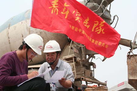 中铁四局有团员青年1万余人,有300余支青年突击队活跃在全国重点工程施工一线。近年来,该局紧紧围绕施工生产中心,充分调动“80后90后”青年突击队员的积极性,青年突击队组织迅速,冲锋在前,在重点工程技攻关、安全生产、技术创新、突击抢险等活动中,发挥了排头兵作用,打造了一批敢打硬仗,敢啃硬骨头,青年“铁军”。这是中铁四局合肥铁路枢纽项目部青年突击队队员在保质保量的完成各项工程进度。(张红雷 摄)