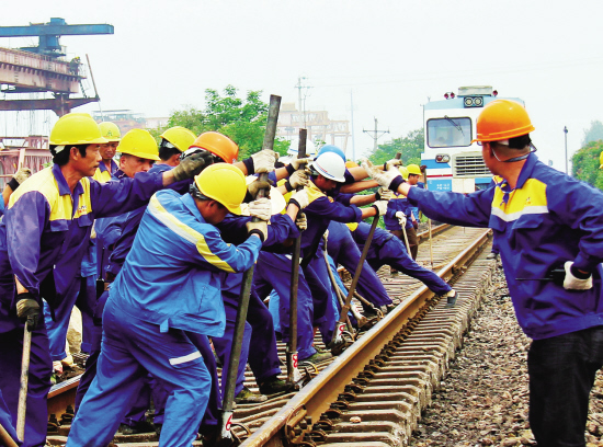 7月1日,施工人员正在金(华)温(州)扩能改造工程金华南站温州端S曲线线路进行紧张拨接作业。当日,中铁四局金温指挥部经过10天的精心准备和奋力拼搏,下午1时安全顺利地完成了改线工程线路拨接任务,打开运梁通道。这次既有营业线成功拨接外移4.7米,给箱梁架设留足了作业空间,为附近既有营业线架设箱梁提供了安全保障。 (潘新 龙杰)