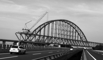 据承建该桥的中铁四局钢结构公司负责人介绍,特大桥的拱顶与地面的相对高度达80米,桥梁总重达到1.3万吨,桥下还有高速公路正在通行,高空作业时间长、安全风险大。因此,这两座拱桥都采用“带拱顶推、拱脚合龙”的施工,为国内首创。如今,双双合龙后,如同两座彩虹桥横卧合宁高速上,成为合肥城南的风景线与地标性建筑。