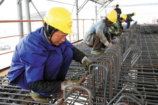 昨天,在金东区孝顺镇杭长线金东制梁场,作业人员正在施工大棚绑扎钢筋箱梁,加快节后施工进度。 春节刚过,中铁四局杭长线浙江段针对工期卡控点多、连续梁施工多、预制梁多、超高压迁改面广等困难,迅速启动节后施工。春节期间中铁四局共有1352名建设者坚守工地。(记者 时宽兵 通讯员 李旭 文/摄)
