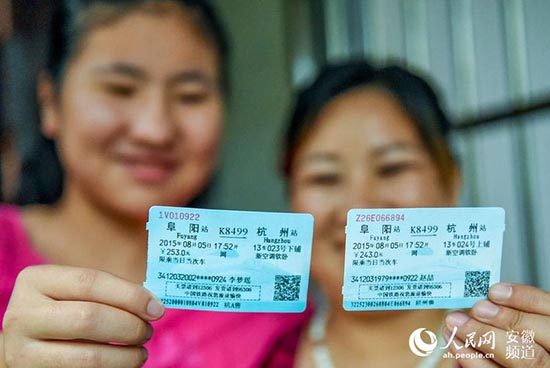 李梦瑶和母亲拿着阜阳到杭州的车票准备出门