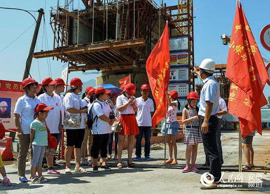 壶源江特大桥项目负责人向探亲家属们介绍工程进展情况