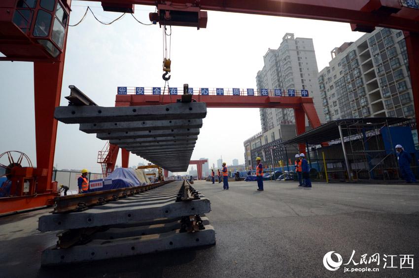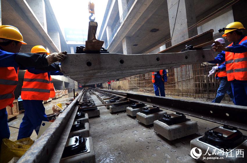 人民网南昌3月18日电 (时雨 向小国 穆经纬)3月18日,南昌地铁建设进入一个重要的新阶段——南昌轨道交通1号线一期工程的铺轨施工率先在高新大道站铺轨基地启动。据悉,2015年年初,1号线一期工程将力争完成全线轨道的铺设,为2015年底实现通车试运行的目标创造条件。
