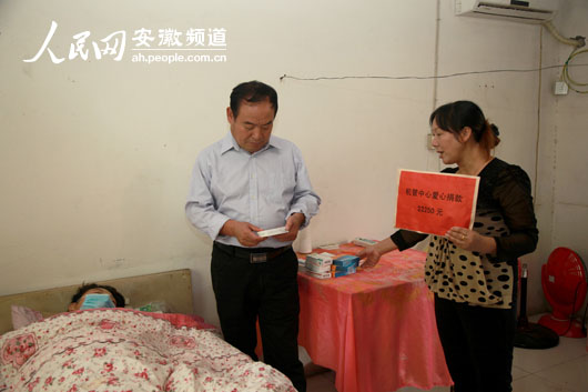 9月25日,中铁四局四公司机械设备管理中心党政主要领导来到职工贾亚开的住处,看望身患重症的贾亚开,并为他和他的家人带来了22250元爱心款。〕