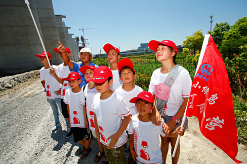 7月23日,中铁四局二公司为近百名农民工子女举办的“小候鸟”夏令营在浙江宁波开幕。这些利用暑期到工地探亲的“小候鸟”来自贵州、湖南、安徽等地,他们不仅实地探访父辈工作的宁波铁路枢纽新建北环线工程,还到当地纪念馆、风景区等参观游览。据了解,此次夏令营为期一周,主办方精心准备了学习书籍和文具,让“小候鸟”们度过一个难忘快乐的暑假。新华社发(李旭 摄)