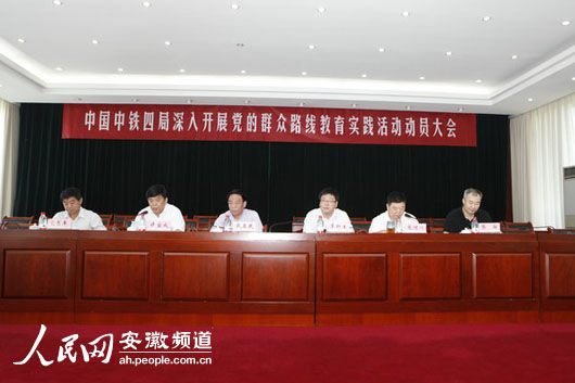 8月9日,中铁四局党委党的群众路线教育实践活动动员大会在本部大会议室举行,中国中铁股份公司督导组,中铁四局领导班子成员,局本部各部门负责人,各三级子(分)公司、局直属指挥部党政主要领导共百余人参加了动员大会。会议由中铁四总经理许宝成主持,中铁四局董事长、党委书记、群众路线教育实践活动小组组长张河川作动员讲话,中国中铁股份公司党委党的群众路线教育实践活动第五督导组组长李新生对活动提出了具体要求。