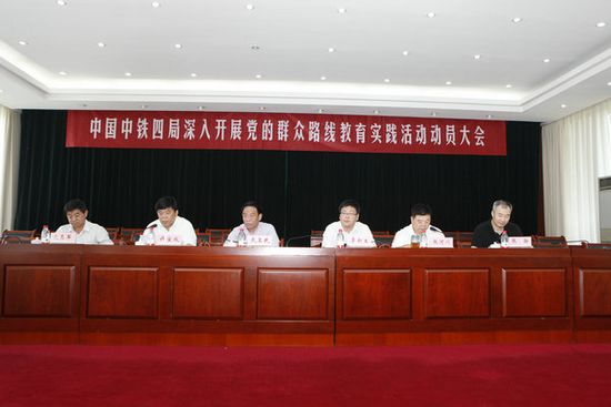 中国中铁股份公司党委党的群众路线教育实践活动动员大会召开后,中铁四局党委迅速传达了国资委、股份公司党委的精神和意见,并于7月30日成立了中铁四局党委党的群众路线教育实践活动领导小组,领导小组组长由局董事长、党委书记张河川担任,副组长由局总经理许宝成,党委副书记、纪委书记资宝成,工会主席段广和担任。领导小组下设日常工作机构。8月8日,四局党委又下发了《中铁四局深入开展党的群众路线教育实践活动实施方案》对活动进行了详细部署。本次教育实践活动不分阶段、不搞转段,活动分三个环节,总体时间安排为半年左右,具体一个单位,集中教育时间不少于3个月。