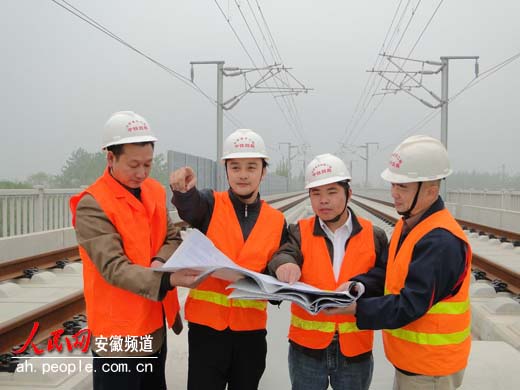 2009年5月,梅俊还未弹去甬台温铁路建设工地的征尘,旋即来到了合蚌客专建设工地,开始了新一轮的建设征程。合蚌客专设计时速350公里/小时,专业类型多、质量标准高,CFG桩施工、高性能耐久性混凝土应用、900吨双线箱梁预制、CRTSII型板式无砟轨道施工等高新技术应用多,空前的挑战摆在了梅俊面前。近半个月的沿线勘探、挑灯夜战下来,他优化指导性施工组织设计,编制完成了全线施工组织设计方案。方案改变架梁顺序,为路基施工赢得宝贵时间,为实现“零沉降”目标奠定了坚实基础;将杜家岗特大桥跨既有淮南线(60+100+60)米连续梁施工工艺由悬臂浇筑改为支架现浇,缩减工期3个月,满足了架梁工期要求;调整下塘制梁场位置,减少土建工程量,节约资金150万元。