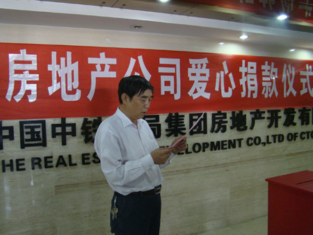 图为中铁四局房地公司书记严伟潮组持捐款仪式