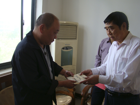 中铁四局房地产公司党委书记严伟潮将爱心捐款送到家属患病员工手中
