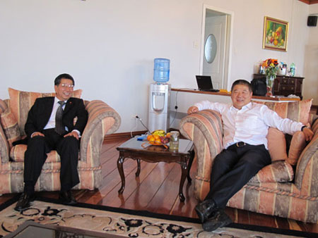 苑桂森大使对张河川一行表示欢迎,并对中铁四局乔内水利项目的施工和党建工作开展给予了充分肯定。苑桂森指出,厄瓜多尔经济运行稳定,人文环境良好,期望以中铁四局为代表的中资企业在厄瓜多尔建设中发挥更大作用。张河川对大使馆一直以来给予的关心和支持表示感谢,指出中铁四局自2008年6月进入厄瓜多尔以来,高度重视项目的进度、安全和质量管理工作,珍视并爱惜作为中资企业的信誉,强调中铁四局将进一步加大在厄市场开发力度。会后,苑桂森大使在官邸宴请张书记一行。