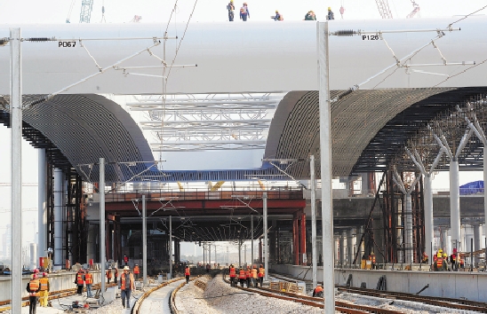 浙江在线12月13日讯 12月12日,杭州新火车东站工地,中铁四局集团、省建工集团等施工单位的建设者,正抓紧轨道施工和调试线路设备,确保车站转线任务顺利完成。本报记者吴元峰通讯员丁力摄